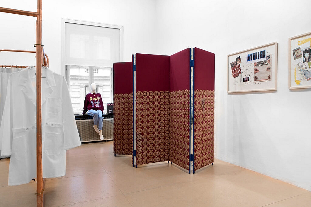 Atelier E.B (Edinburgh Bruxelles) is the company name under which the designer Beca Lipscombe and the artist Lucy McKenzie sign their collaborative projects. The group was formed in 2007 and since 2011 the pair have operated as a fashion label. This spring, they present for the first time in Vienna with their third collection, IOTII, for sale direct to the public from a custom-built boutique installation at Galerie Meyer Kainer.