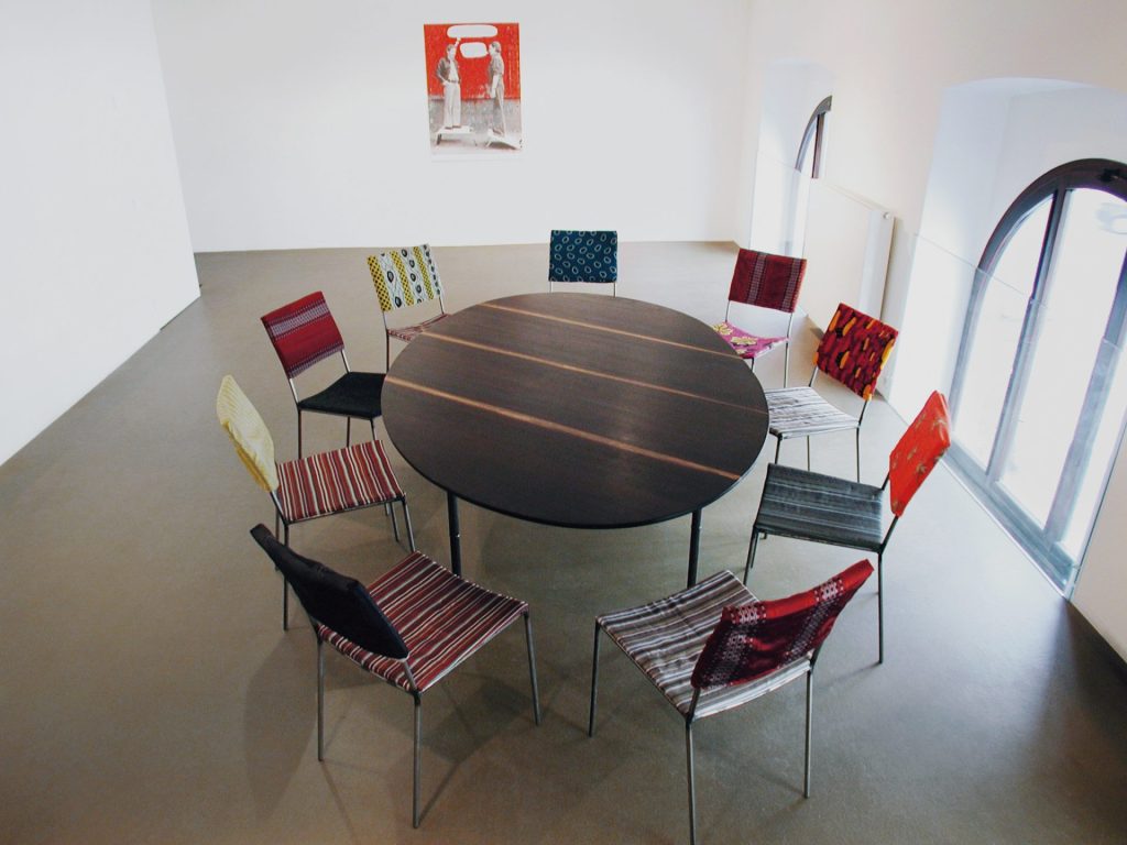 Franz West In der Schweiz 2001 Papier-maché 98 x 71 x 67 cm Table: metal, wood 74.5 x 88 x 88 cm