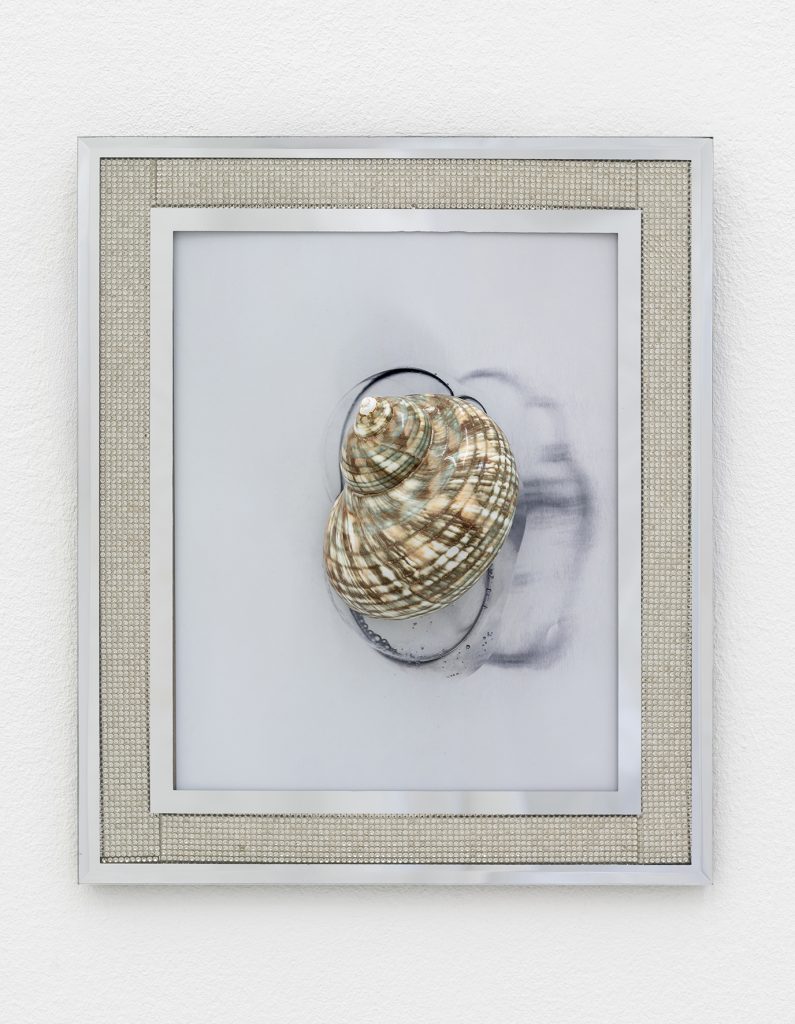Meyer*Kainer presents Species of the Pod, an exhibition of Hélène Fauquet’s sculptural reflections on seashells and the questions raised by their forms. Fauquet introduces a body of work composed of her collection of seashell souvenirs mounted on top of framed photographs, close-ups of various fluids, blobs and bubbles which had been the central subject of her previous exhibitions. Glamorously framed, the resulting objects exert the scintillating appeal of opaline alcoves. The sounds of distant waves echo across the pearlescent interior of each shell, espousing the circumvolutions of its thoughts like in a surrealist dream.