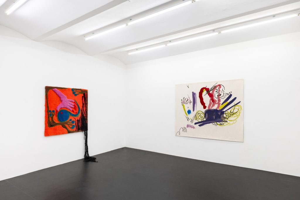 The presentation at Galerie Meyer*Kainer brings together significant works by female artists of a young generation, which are of course also about “art about art”, whereby technically speaking, both centuries-old weaving techniques are used as well as innovative techniques such as tufting, in which the yarn is applied to the already woven fabric base from the outside, which can also create raised patterns.